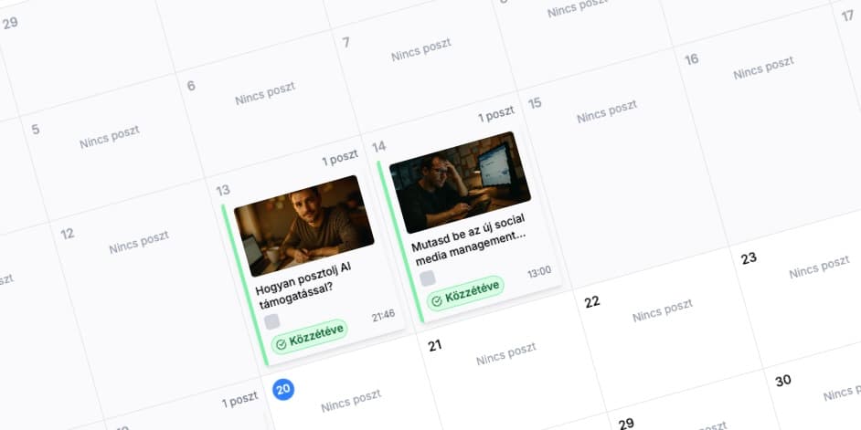 Posztolj azonnal több platformon egyszerre, és érj el minden közönséget egyetlen kattintással. Ha pedig nem akarsz a gép előtt ülni, időzítsd a tartalmaidat a számodra legjobb pillanatra – amikor követőid a legaktívabbak. Így mindig ott leszel, ahol számít, anélkül hogy állandóan a közösségi médiát kellene figyelned.